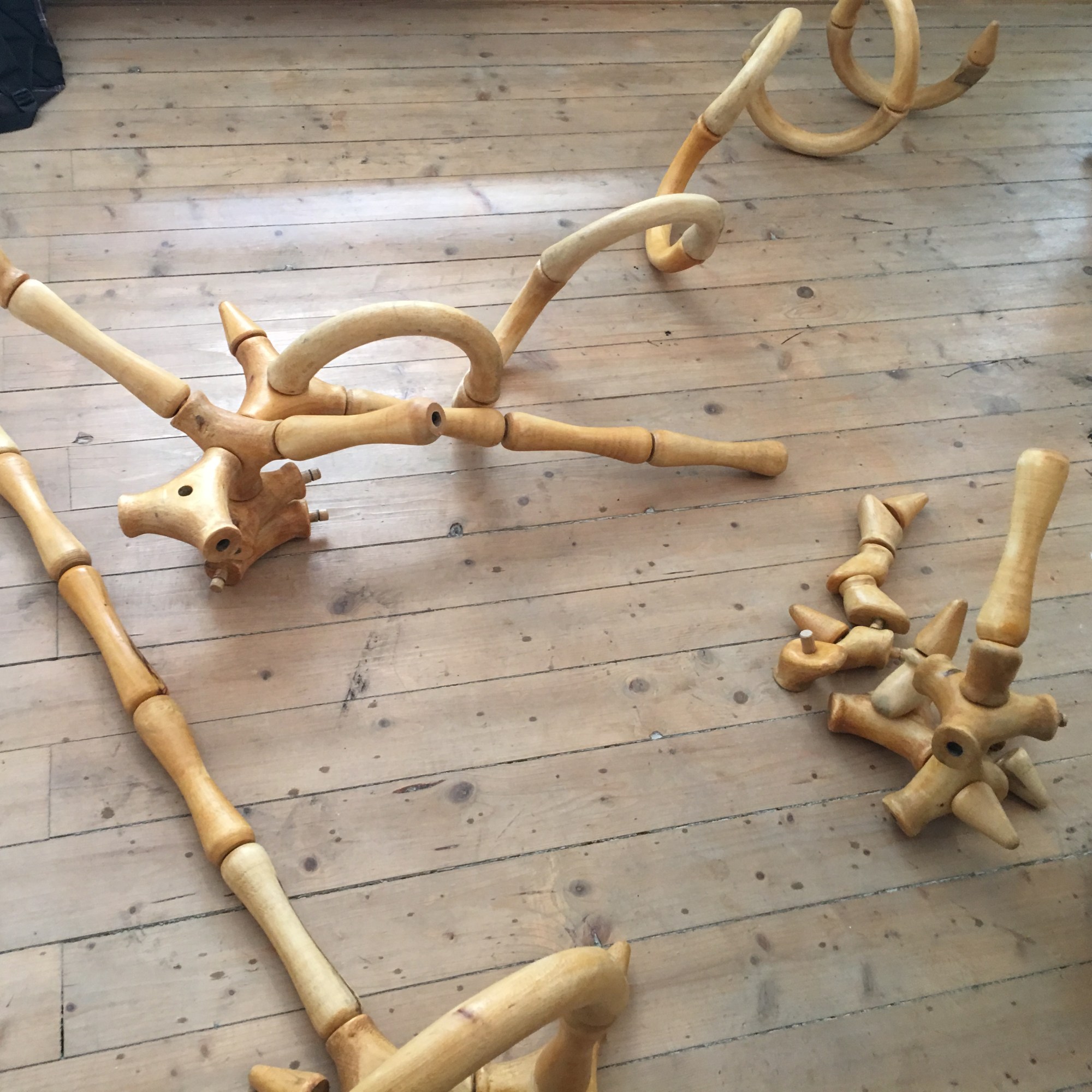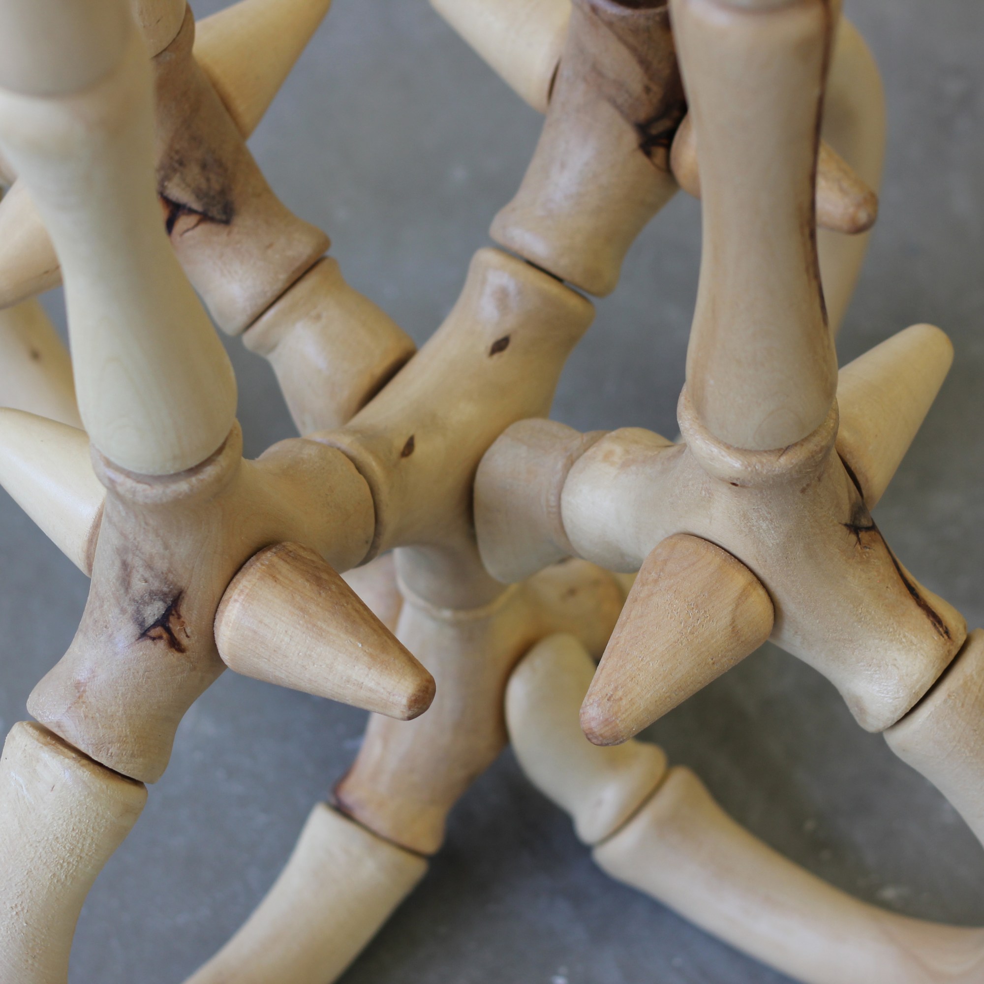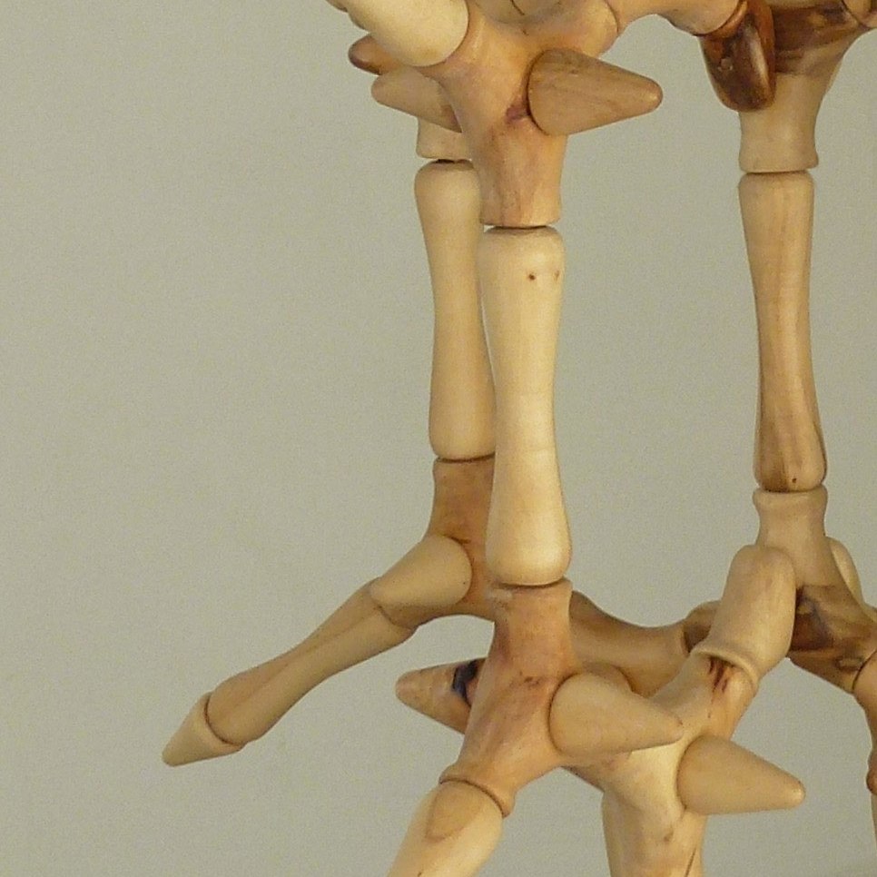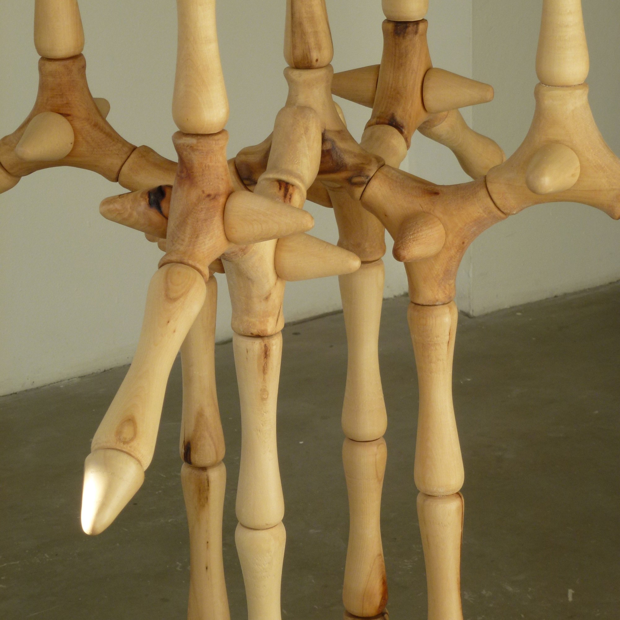 Ho così realizzato moduli in legno che richiamano le forme geometriche del plancton. Questi si possono collegare tra loro nelle più diverse combinazione. Essi rimandano ad elementi organici come le ossa, sia per la loro forma rotondeggiante e smussata, sia per la predominanza della linea curva che rimanda inevitabilmente all’organico.