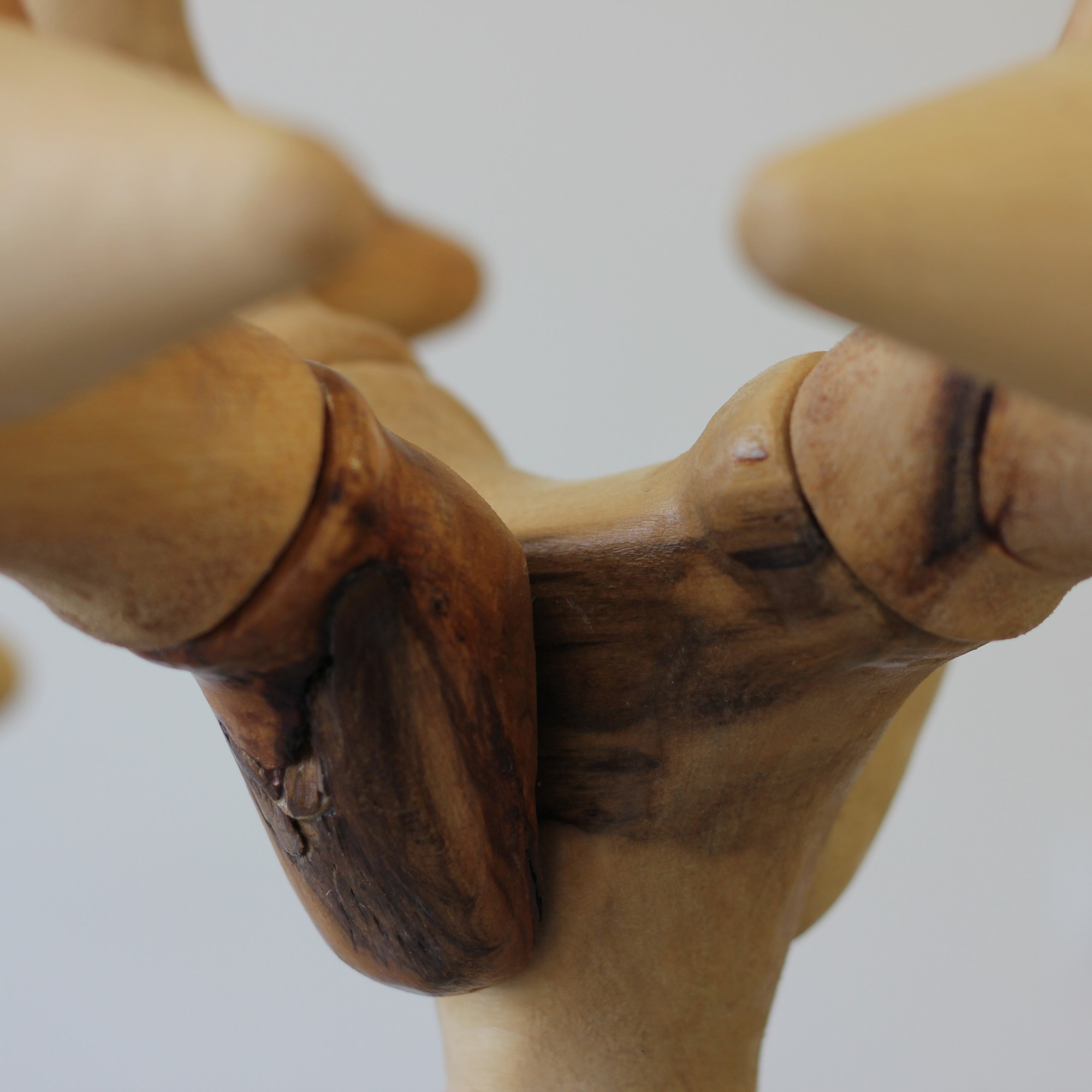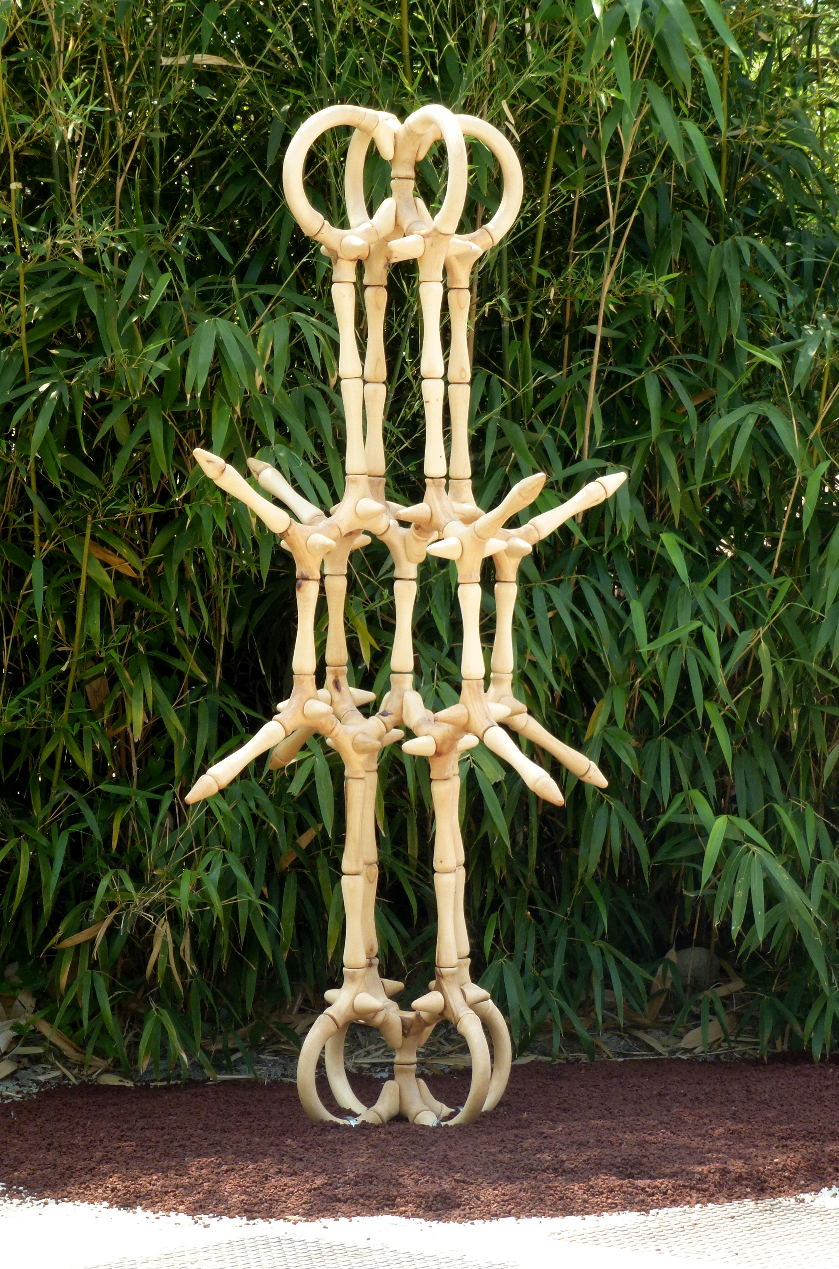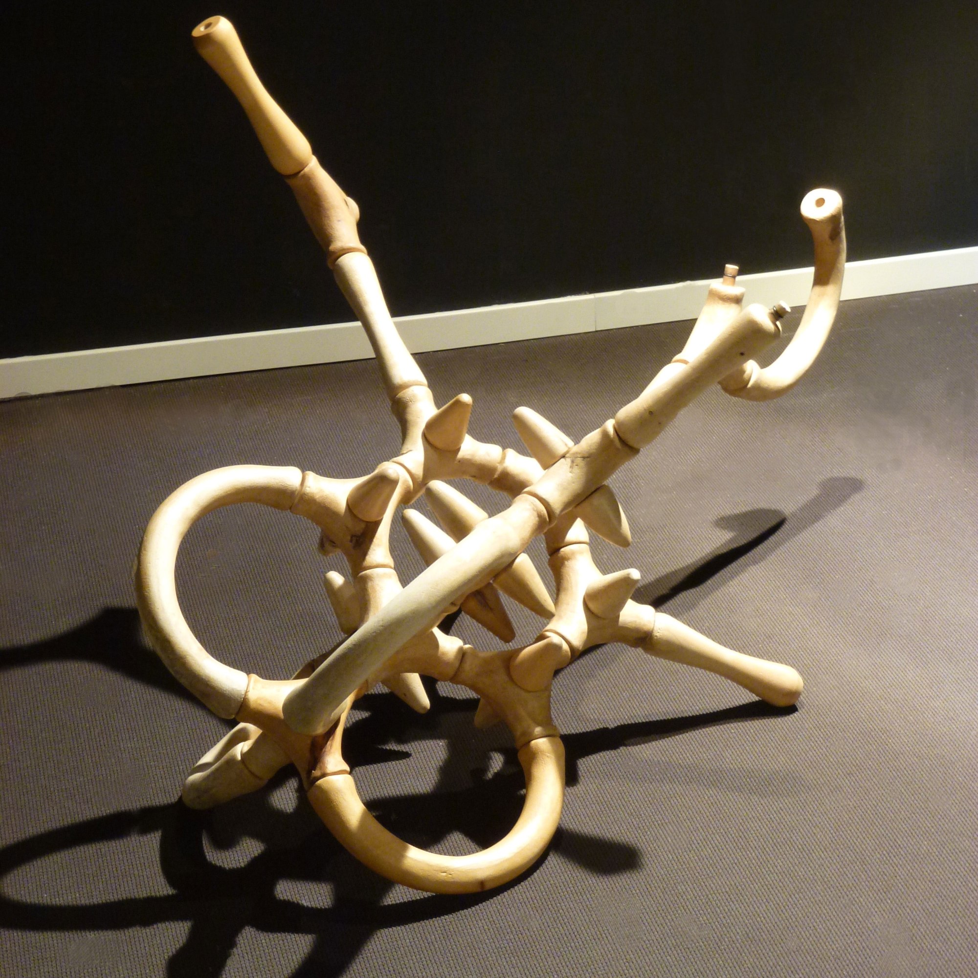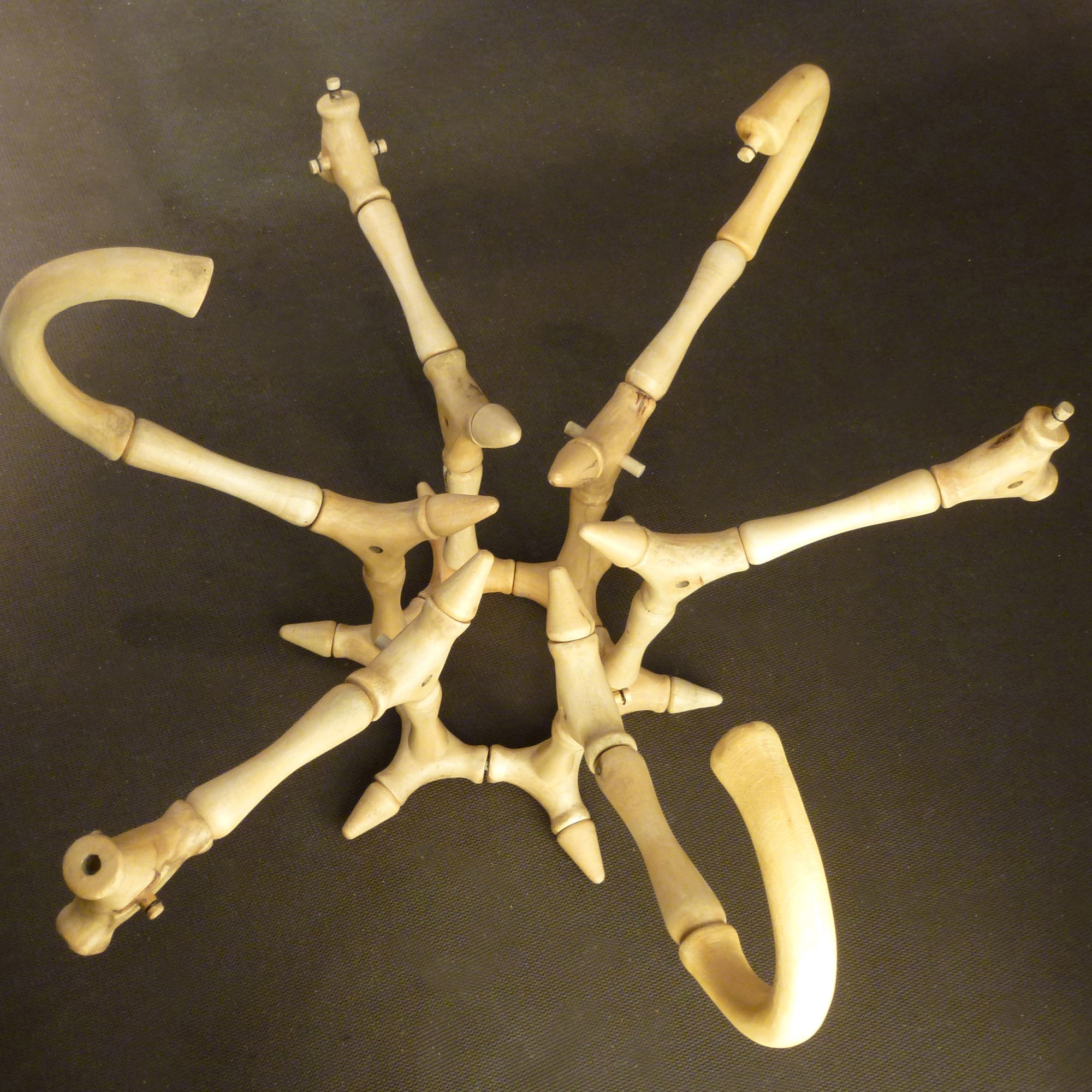 Ho così realizzato moduli in legno che richiamano le forme geometriche del plancton. Questi si possono collegare tra loro nelle più diverse combinazione. Essi rimandano ad elementi organici come le ossa, sia per la loro forma rotondeggiante e smussata, sia per la predominanza della linea curva che rimanda inevitabilmente all’organico.