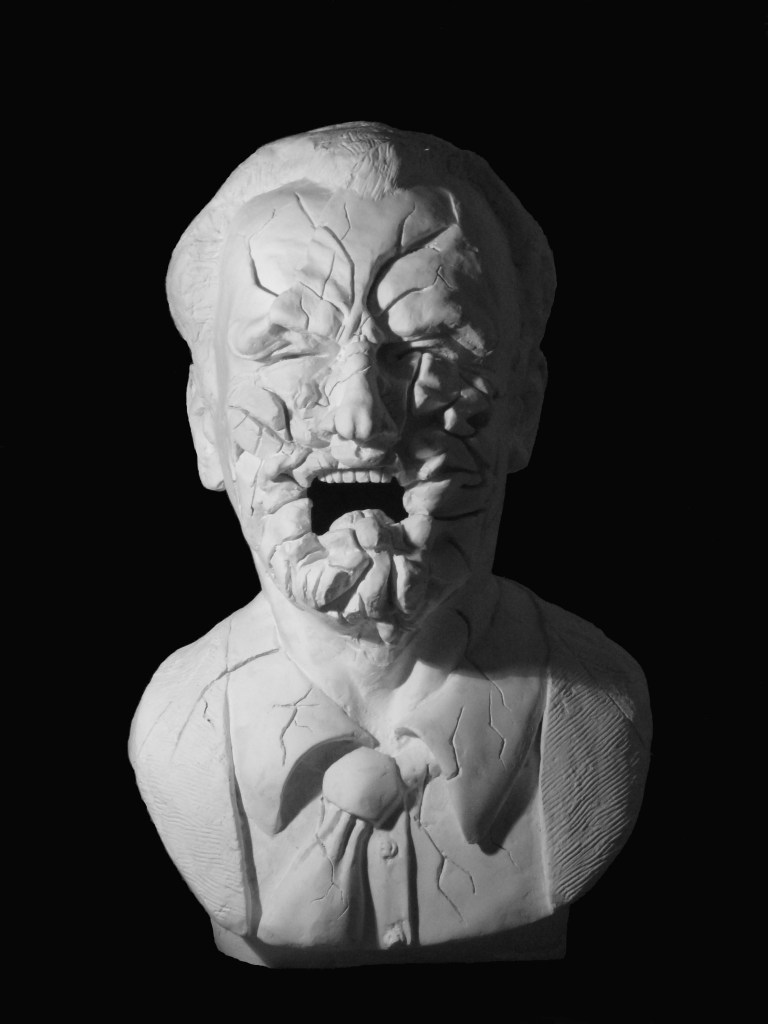Nella foto dettaglio l’opera: “Judas, Disintegration of Being”, gesso, 43x50x25 cm